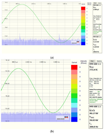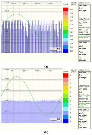 - IEC 60270. High-Voltage Test Techniques: Partial Discharge Measurement; International Electrotechnical Commission (IEC): Geneva, Switzerland, 2015. [Google Scholar]