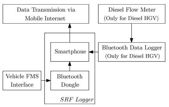 Data collection for the two use cases, i.e., the EB and diesel HGV cases, are discussed next. A block diagram of the data collection set-up is shown in Figure 3.