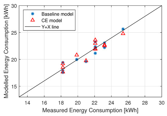 Figure 5 shows the energy consumption of the proposed CE model and the baseline EB model versus the measured values.