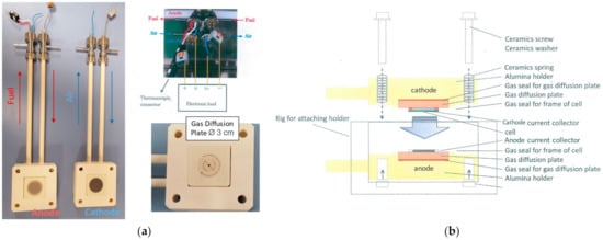 (a) All-Ceramic SOFC Test Holder used for the study; (b) schematization of cell assembly procedure.