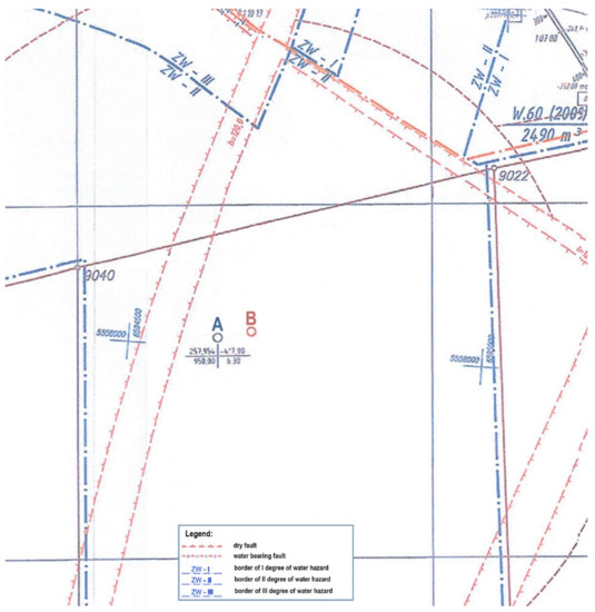 Despite investing in renewable energy sources and development of other energy sources, Polish energy is still coal based. Poland also has extensive resources of coking coal, which is necessary for steel production. These factors cause a need for coal mine operation, because of the coal demand. Economic mine operation requires maintenance, modernization, or elongation of existing mine shafts and even building new. A new mine shaft was designed in the Silesian Coal Basin in southern Poland to raise the effectiveness of a coal mine. The process of the shaft design is presented in the following article. The location of boreholes, with respect to mine workings in coal seam no. 207, geological faults, and borders of water hazard area are presented in Figure 1.