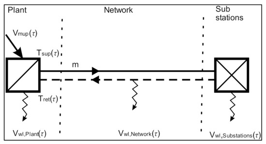 District heating systems (DHSs) are closed water systems, usually with a large territorial range in a city. DHSs supply heat and domestic hot water to heat consumers in a very efficient way, especially where combined heat and power (CHP) plants produce heat [1]. European Union (EU) energy policy is now focused on increasing renewable energy production and improving energy efficiency [2]. Both of these goals can be achieved through DHSs, within the smart district heating concept framework [3,4]. Intensive research activities to improve operation and energy efficiency of DHSs have been evident in recent decades. These activities focus mainly on developing DHS simulation and optimization models and tools for effective design [5,6,7,8].