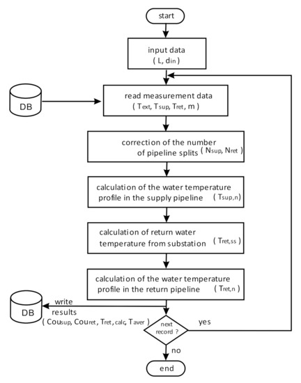 The flowchart of the calculation procedure for average water temperature in DHN is shown in Figure 6.