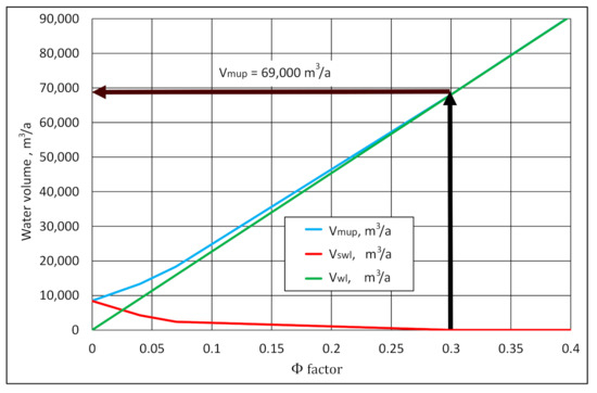 DHSs are characterized by changes in the temperature of water in the DHN, which cause changes in the volume of water and, thus, affect the amount of water supplementing the system. The value of the changes in the volume of water in 1 h can be calculated according to Equations (12) and (13).