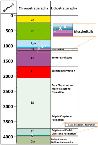 - Kasperska, M.; Marzec, P.; Pietsch, K.; Golonka, J. Seismo-geological model of the Baltic Basin (Poland). Ann. Soc. Geol. Pol. 2019, 89, 195–213. [Google Scholar] [CrossRef]