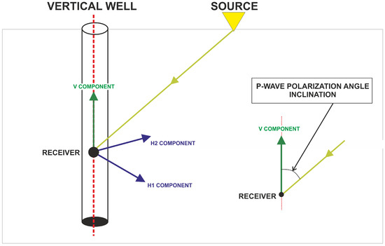 Our processing sequence selection criteria were the lowest polarization angle determination error and the most stable distribution along the whole depth interval. The polarization angle is the angle between the axis of the vertical well (parallel to the receiver’s vertical component) and the P-wave incident ray. We will call this the angle inclination; see Figure 6.
