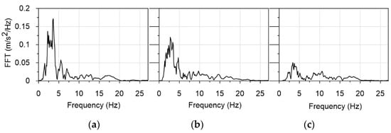 The frequency spectra of the recorded accelerations: (a) horizontal direction W–E; (b) horizontal direction N–S; (c) vertical direction Z.