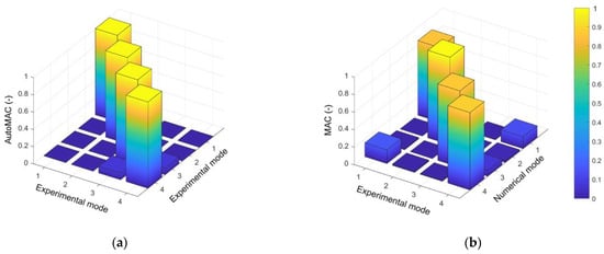 Finally, the results of the experimental and numerical analyses were compared. The first four natural frequencies obtained experimentally and numerically are collected in Table 2, whereas the corresponding modes of vibration are presented in Figure 12.