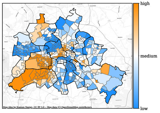 - Amt für Statistik Berlin-Brandenburg. Einwohnerinnen und Einwohner im Land Berlin am 31. Dezember 2018: LOR-Planungsräume. 2019. Available online: https://www.statistik-berlin-brandenburg.de/Statistiken/statistik_SB.asp?Ptyp=700&Sageb=12041&creg=BBB (accessed on 9 January 2021).