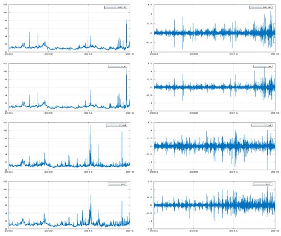 31]. Looking at the time series of electricity prices, we can see some very erratic behavior. Power prices show, in fact, variable and unpredictable behavior with high and stochastic volatility; jumps and pronounced spikes; and a strong mean-reversion component, responsible for reducing prices after a jump or a spike has occurred [