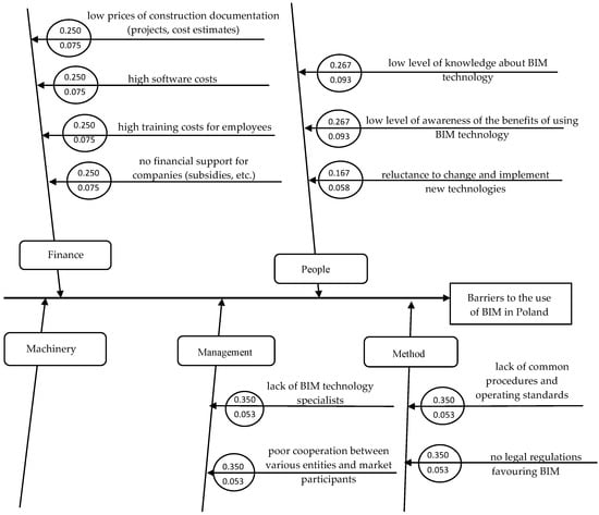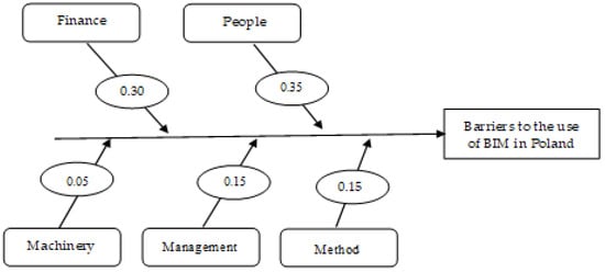 Ishikawa diagram—significance weights of the main categories of barriers to the use of BIM in Poland.