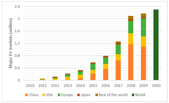 - IEA. Global Electric Car Sales by Key Markets, 2010–2020. Available online: https://www.iea.org/data-and-statistics/charts/global-electric-car-sales-by-key-markets-2015–2020 (accessed on 20 January 2021).