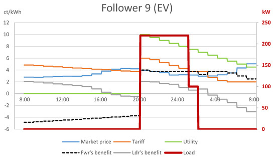 Optimistic tariff with the least favorable follower response: consumption of follower 9 with EV charging.