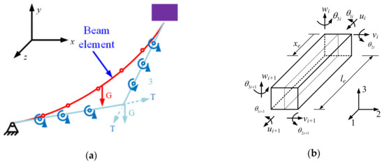 Catenary mooring-line and 3D beam elements. (a) Schematic of catenary mooring-line; (b) 3D beam element.