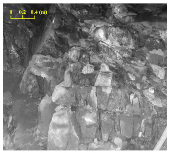 Figure 10). It was assumed that the cracks in the grouted block were fully filled by cement paste. The mechanical properties of the grouting block were enhanced compared with the non-grouted blocks. Mechanical parameters of the pre-reinforced rock elements and joints were assigned according to