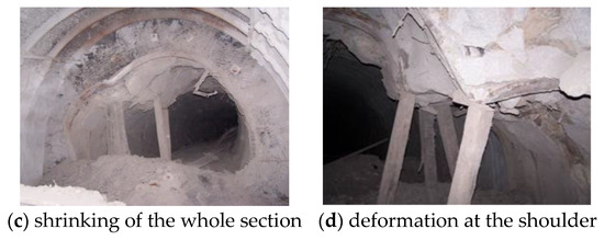 Figure 14. We observed that the maximum displacement of the roof, floor, and sidewall was approximately 210, 140, and 50 mm, respectively. This is satisfactory for roadways in such unfavorable geological conditions.