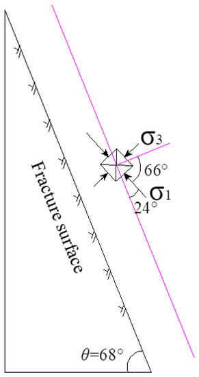 The rock elements stayed in the three-dimensional stress balance state before failure occurred. The stress state changed when tectonic movement happened. According to the Mohr failure theory, the normal stress components on the failure face can be given as: