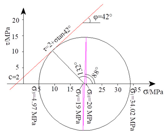 and the normal direction of the failure plane. The cohesion of intact sandy mudstone is c = 2.0 MPa and the internal friction angle