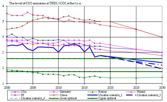 Taking into account the available data on the indicators of economically developed countries and using the previously designed equations, the t-test technique, and the modelling method, there were computed the vectors of the threshold values of energy security indicators of Ukraine in view of sustainable development (Table 3).