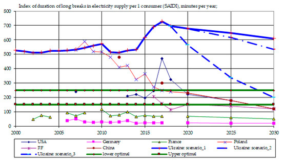 The lack of appropriate changes in the system of interrelations among the elements and the non-introduction of new functions and the links among them only destroy the “old” process of forecasting supply and demand in the electricity market. In turn, this leads to problems of balancing the system and the introduction of forced restrictions on the planned work of market participants. An additional burden is the requirement to pay a high “green tariff” for all volumes of RES energy not accepted by the system due to operational security requirements. All this is reflected in the growth of the index of average interruption duration of power supply (SAIDI) (Table 4 shows the criticality of this threat), the cost of energy supply to consumers (through the introduction of incentives, the highest in Europe) and, as a result, the termination of calculations for “excessive” amounts of generated green energy (due to the gradual reduction of consumption and financial resources of the market).