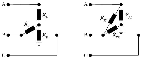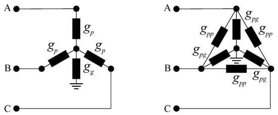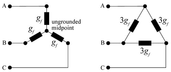 d) presents two adjacent three-phase buses that are connected via an ideal transformer [