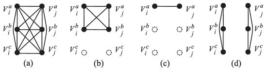 c) present two adjacent three-, two-, and single-phase buses that are connected via a distribution line. Sub-figure (