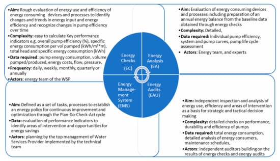 Energy management strategy processes for water supply adapted from [].