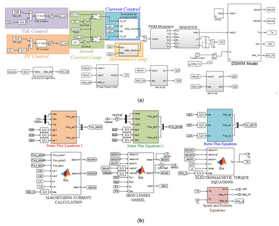 Simulink block diagram of the: (a) power conversion system and control strategies and (b) DOL-DWIM model.