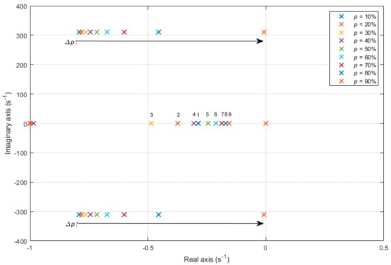 Figure 11. System eigenvalues locus for different penetration levels with synthetic inertia control.