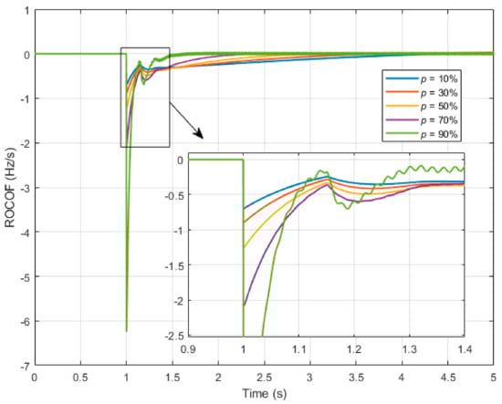 Figure 15. ROCOF response for different penetration levels.