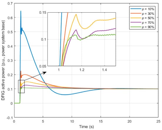 Figure 16. DFIG active power response for different penetration levels.