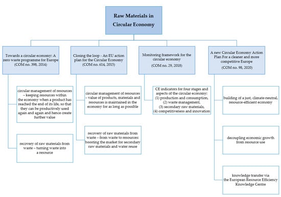 In summary, the main European and national documents regarding the CE implementation strongly underline the sustainable management of the raw materials throughout their whole life cycle. It is important to keep the added value of products as long as possible, and if waste is generated, to recover raw materials from it. Recovery of raw materials from waste is a key element in the implementation of the CE model at the national and European levels.