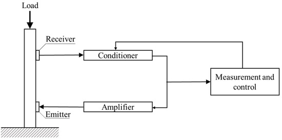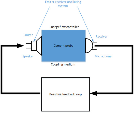 Therefore, the innovation of the SAS system is that, in contrast to classical methods, we do not directly measure the natural frequency of the tested cement sample. Neither is the velocity of the acoustic wave that propagates through the test sample directly measured. Only the self-excited system’s frequency depending on the elastoacoustic constant and stress in the tested material is measured. This eliminates problems associated with dispersion or the presence of microcrack.