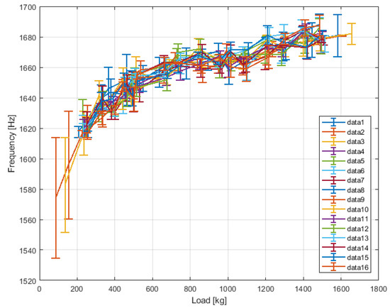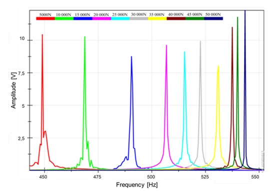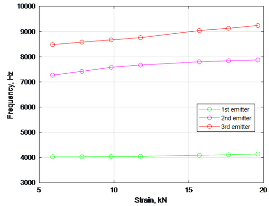 Typical results obtained during SAS monitoring, where the resonance frequency shift with the stress level change, are presented in Figure 5.