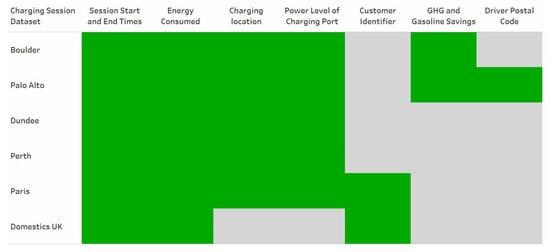 - TransportTeam. Electric Vehicle Charging Sessions Dundee. Library Catalog. Available online: data.dundeecity.gov.uk (accessed on 17 March 2021).