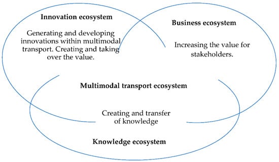 Economic results and business relationships between entities are underlined in the literature as devoted to business ecosystems. Innovation ecosystems are focused on mechanisms and policies favoring the creation of innovation. Knowledge ecosystems are the consequence of creating new knowledge based on common research works, cooperation, or development of the knowledge base. Each of these ecosystems plays a special role in creating conditions for the development of multimodal transport. The crossing of the business and innovation objectives as well as the generation and flow of knowledge causes the holistic approach to be the only way to combat the problems of multimodal transport within the TRITIA area.