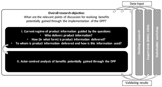 Due to the uncertain development of a DPP in the future and the lack of scientific debate on the DPP, this study seeks to work out design options of the DPP and important questions to be answered in the not-too-distant future regarding the implementation of the DPP. In so doing, we first show our step-wise approach (Section 2) and, then, describe the existing regime of regulated and voluntary product information tools focusing on the role of stakeholders (Section 3.1 and Section 3.2). Intermediate results presented in Section 3.3 are examined in an actor-centered analysis on potential advantages gained through the DPP factoring in the most relevant stakeholder groups in a product’s value chain. Lastly, in Section 4, we discuss our results with respect to the design of the DPP, and we focus on open questions, which need to be addressed in the not-too-distant future.
