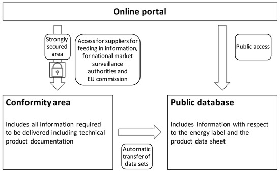 - Bundesministerium für Wirtschaft und Energie. Die neue EU-Produktdatenbank EPREL. Ein Informationspapier für Hersteller und Importeure von Energieverbrauchsrelevanten Produkten; Bundesministerium für Wirtschaft und Energie: Berlin, Germany, 2019; p. 7. [Google Scholar]