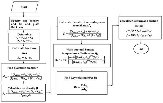 The thermal performance of finned surfaces is commonly reported on in terms of the Colburn factor (j); this term conveniently represents the heat transfer between plates in laminar or turbulent flow and for fluids covering Prandtl numbers between 0.6 and 100. Available correlations showed to apply well even for low-temperature applications such as those found in cryogenic processes, as demonstrated by Jiang et al. [5]. The applicability of the Colburn factor expressions to cover liquids and gases was demonstrated by the experimental work reported by Yang et al. [6], who determined the thermo-hydraulic performance of plate and fin exchangers using air and water, finding that the Colburn factor provided accurate thermal performance predictions for both fluids. Additionally, new techniques such as artificial neural networks were applied to determine the heat transfer performance from experimental data, as demonstrated by Aasi and Mishra [7].