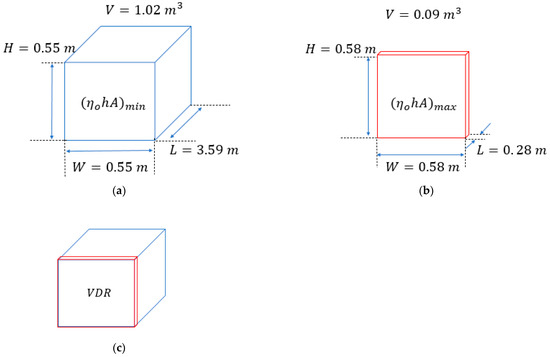 A volume design region (VDR) represented the volume space where a feasible heat exchanger exited and was characterised by minimum and maximum volume boundaries. The key variable that controlled the dimensions of the VDR was the fin density or number of fins per inch in the flow direction. In consequence, the minimum volume was obtained for the highest fin density, while the largest volume was obtained for the lowest density fin. There was another element to consider in the definition of a volume design region. It was related to the shape of the exchanger that was defined by the frontal area and the flow length.