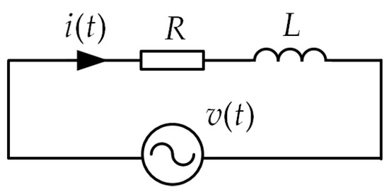 The accuracy of the applied method for approximation of differential equations is assessed using the method present in many publications [5,27,28,38]. This method consists of comparing the amplitude and phase characteristics of the transmittance ratio H(z) for discrete equations in time to H(s) for continuous equations in time as an exact solution. Additionally, the physical interpretation of the transient analysis is presented for an exemplary electrical circuit, the diagram of which is shown in Figure 2. The analyzed electrical circuit consists of a series connection of resistance R and inductance L, powered from an ideal source of sinusoidal voltage v(t). The circuit parameters adopted in the simulation: resistance R = 0.1 , inductance L = 10 mH, voltage source amplitude Vm = 300 V. The mathematical equation describing the two-terminal circuit is as follows:
