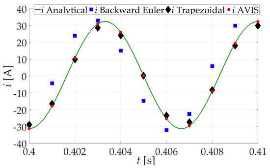 The results presented in this section clearly prove the advantage of the AVIS method used over the backward Euler and trapezoidal rule method, used by other authors in real-time simulation, for the simulation of an exemplary electric circuit.