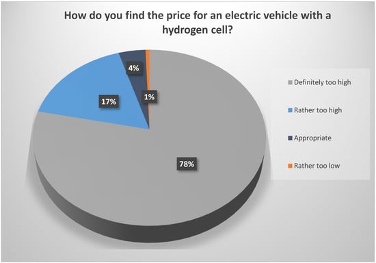 While purchasing goods characterized by long-term use, such as cars, a very significant factor determining the purchase was the price. According to the vast majority of respondents—78%—the price for electric vehicles based on hydrogen cells was by far too high. Only 4% of the interviewees found the current prices for such vehicles to be appropriate, and nobody indicated that they were too low—see Figure 5.