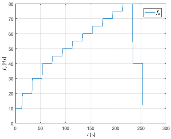 Schedule of the output frequency fo changes during identification experiments.