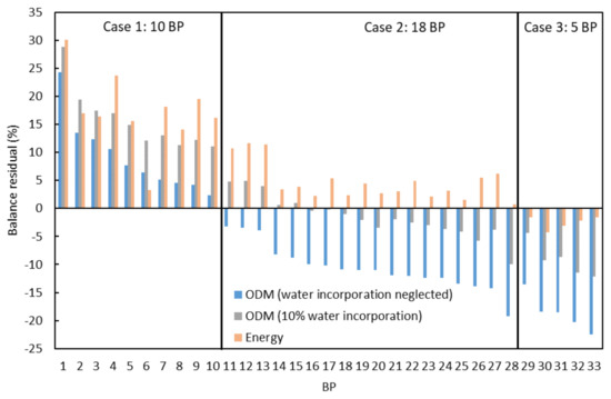 Eighteen BPs show a negative ODMBR and positive EBR. This is attributed to water incorporation and entropy loss. A high data quality for the investigated BPs can be assumed, but more detailed research into water incorporation and entropy loss are necessary to be more specific. From the presented methodology this is the expected case.