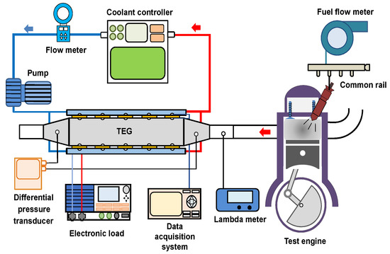 - Kim, T.Y.; Negash, A.A.; Cho, G. Experimental study of energy utilization effectiveness of thermoelectric generator on diesel engine. Energy 2017, 128, 531–539. [Google Scholar] [CrossRef]