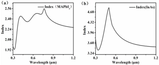 (a) The refractive index distribution of MAPbI3. (b) The refractive index distribution of InAs.