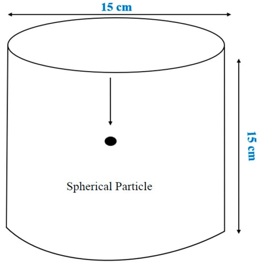 Figure 1 presents the unconfined graduated glass dimensions. The length was 15 cm, and the diameter was 15 cm, to ensure the glass wall did not impact the settling velocity measurements. The particles dropped freely in the unconfined fracture system. The ratio of the spherical diameter to the glass diameter was approximately 1:25, which is acceptable to avoid any effect of the glass walls.