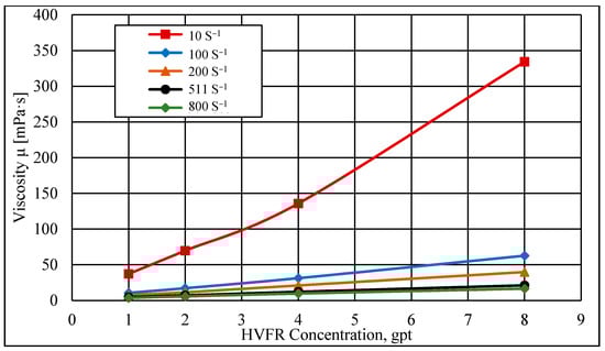 Viscosity curve of HVFR concentrations at different shear rates.