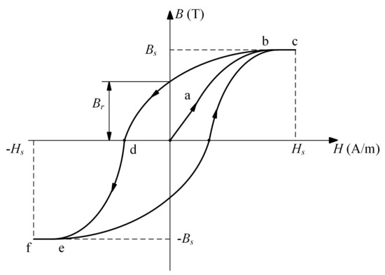 The core loss can be divided into hysteresis loss, eddy current loss, and excess loss. The hysteresis loss is a lag in response to changing forces based on energy loss resulting from internal friction, which is caused by the phenomenon of hysteresis that occurs in the alternating magnetization process of ferromagnetic materials. The hysteresis loop as shown in Figure 1 is often applied to describe and calculate the hysteresis loss. In one magnetization period T, the hysteresis loss can be defined as: